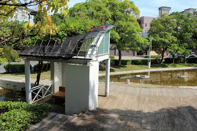 池のそばの休憩所